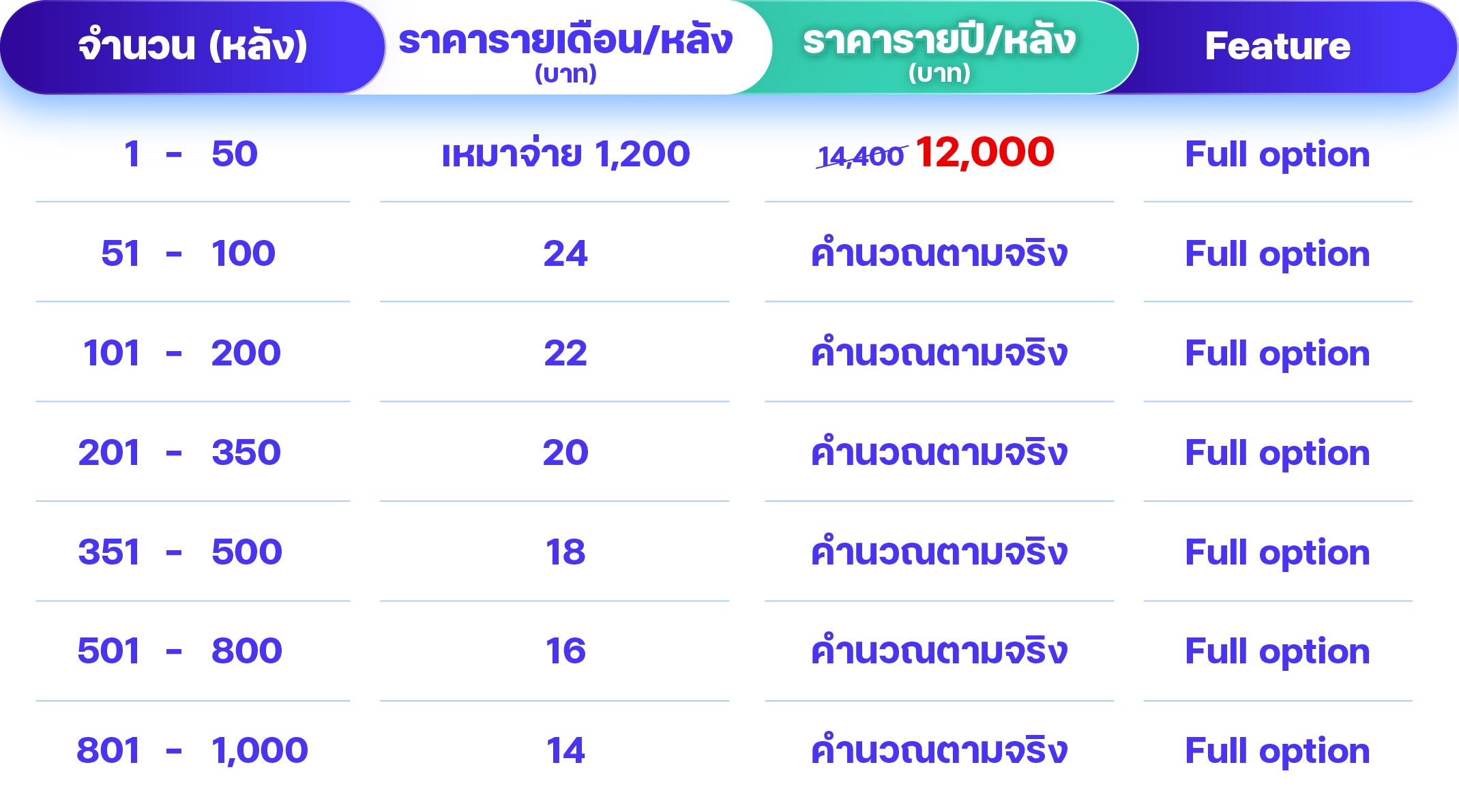 ไม่มีค่าแยกฟีเจอร์ ไม่มีค่าบริการอื่นแอบแฝง